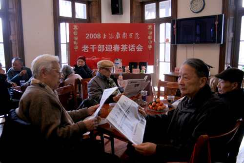 今天上午9时30分,2008年上海戏剧学院老干部迎春茶话会在老干部活动室举行。校领导葛朗、韩生、刘志钢、孙惠柱以及离休干部40余人参加了会议。