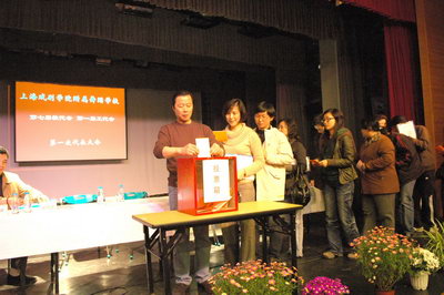 2008年4月12日下午一点整,上海戏剧学院附属舞蹈学校第七届教代会、第一届工代会第一次代表会议在舞校小剧场隆重举行。大会应到正式代表43人,实到38人,特邀代表7人。上海戏剧学院工会专职副主席陈秀珍出席会议。