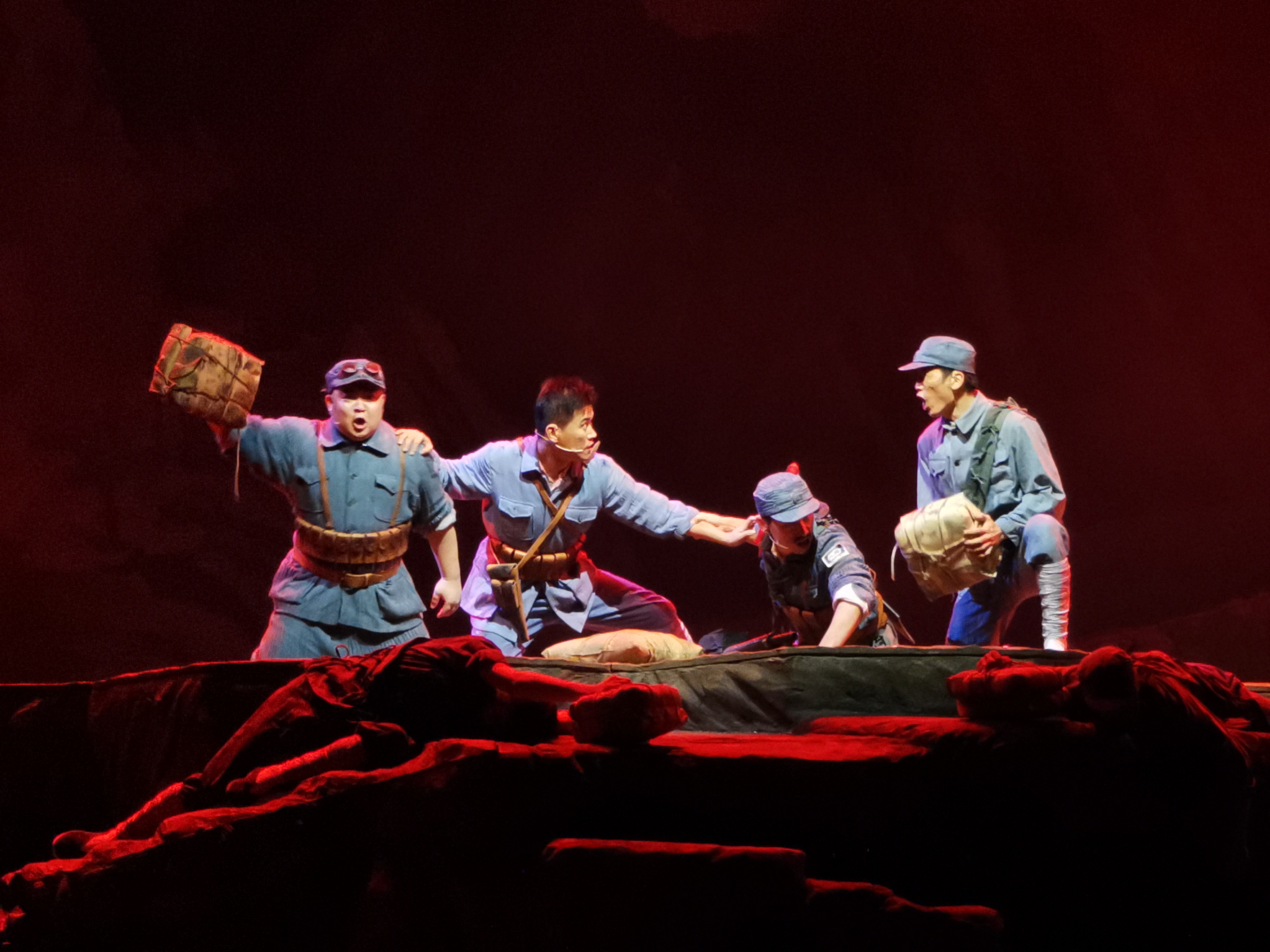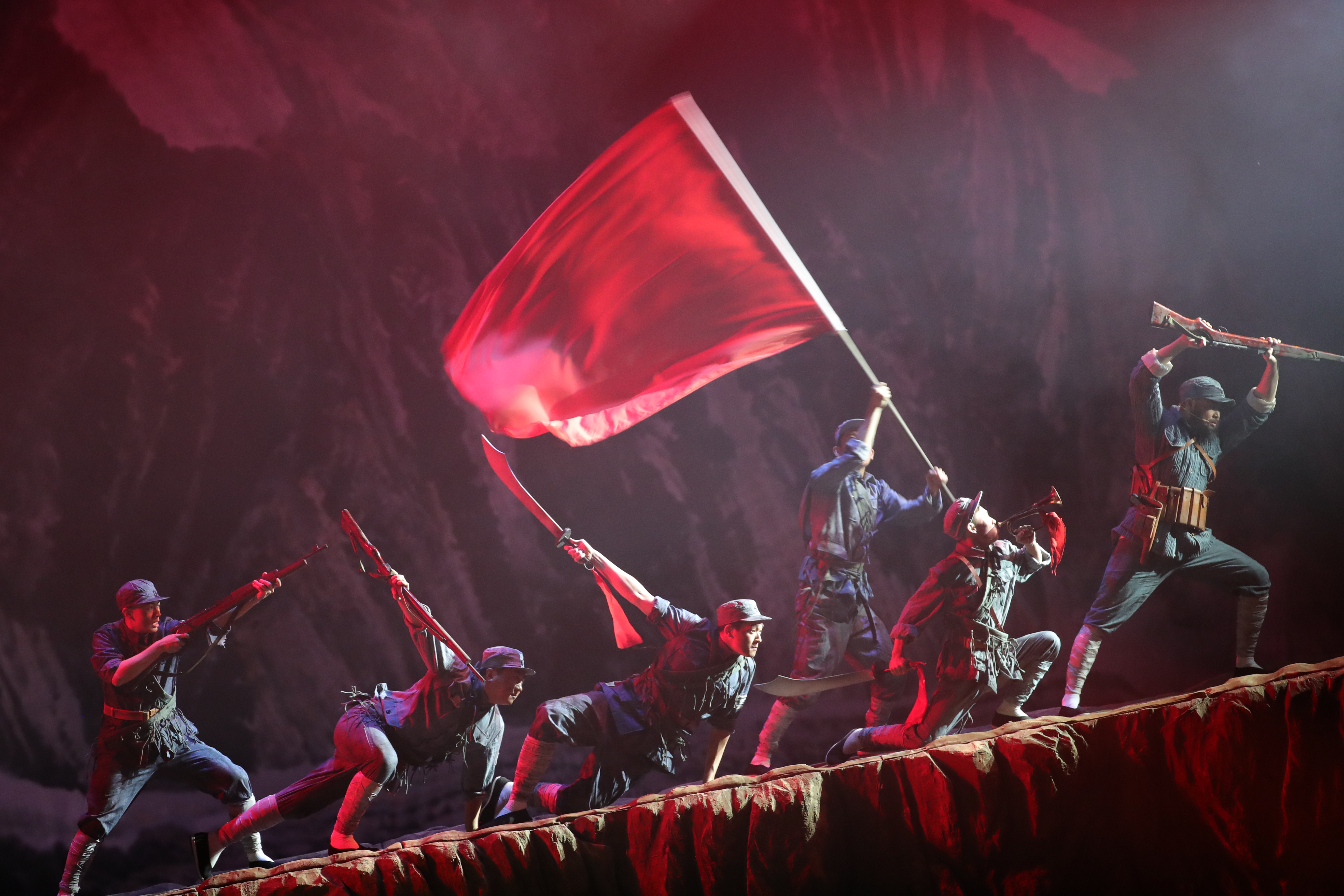 全剧尾声处,多媒体出现英勇的八路军战士迈着整齐、坚毅的步伐从抗日战争走过解放战争,从全国解放走向二十一世界中国人民解放军现代化的大阅兵英武画面……渲染出中国人民解放军百年浴血奋战、勇往直前的浩荡军威!中华民族正是高唱着这首气势如鸿的辉煌乐曲,一往无前,不可阻挡,昂首阔步走在中华民族伟大复兴的征程上。
