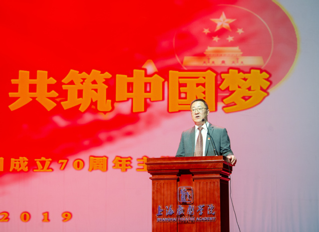 校党委书记谢巍在活动中发表致辞。他强调,70年的历史,是一部中国人民奋力拼搏、努力实现中国梦的历史,70年的历史也是一部上戏人筚路蓝缕、探索追求实现中国梦的篇章。面向未来,上戏人要坚持以习近平新时代中国特色社会主义思想为指导,始终坚持“至善至美”的人才培养理念,围绕“出人才、出作品、出思想、出模式”的办学方针,做起而行之的行动者、当攻坚克难的奋斗者,把初心使命变成锐意进取、开拓创新的精气神和埋头苦干、真抓实干的自觉行动,在行动中诠释初心、创造幸福,在奋斗中担起使命、实现梦想,不断开创学校改革发展新的历史篇章。