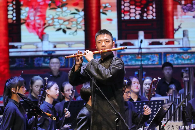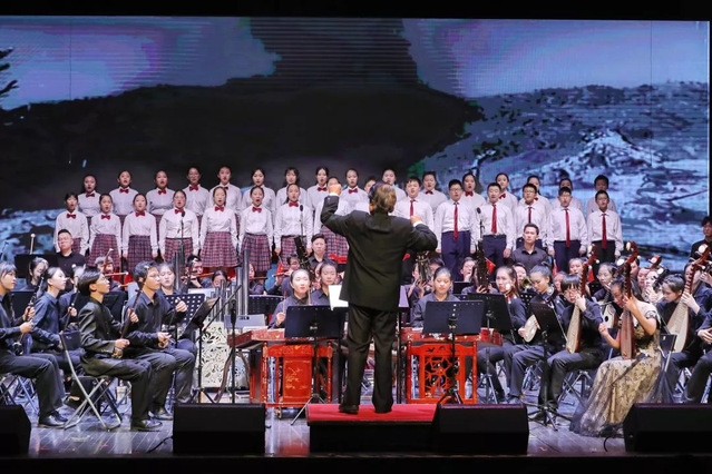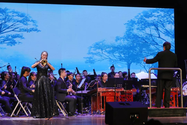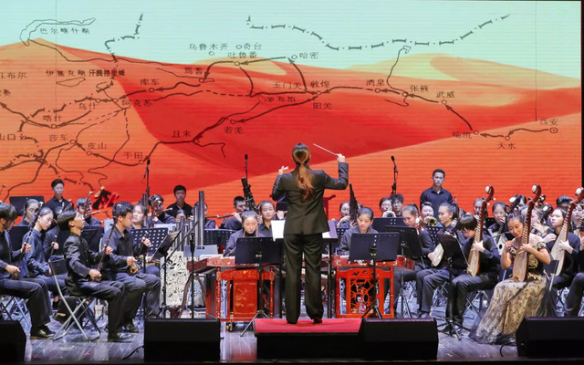 应和“一带一路”战略构想的民族管弦乐《丝绸之路》怀古溯今,其浓郁的西域音乐特征与现代演奏技法交相辉映,听来催人奋进凝心聚力,掀起了整台晚会的高潮。