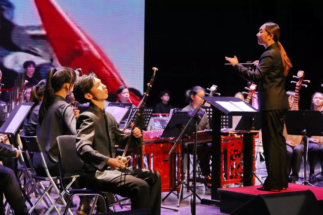 七十年春华秋实,为了能在这个特别的时刻用美妙的音符向祖国母亲献礼,我校戏曲音乐表演专业的120多名学生与全组教师在学校领导的大力支持与各部门的通力协作下,利用繁忙的教学之余,全员集结齐心协力。从选题策划到暑期集训,从分曲排练到最终成型,在近半年的时间里克服诸多困难,长期辛勤奋战,终于在新中国成立70周年之际,为大家呈现了一台热情洋溢、风格多样且优美动听的音乐会。