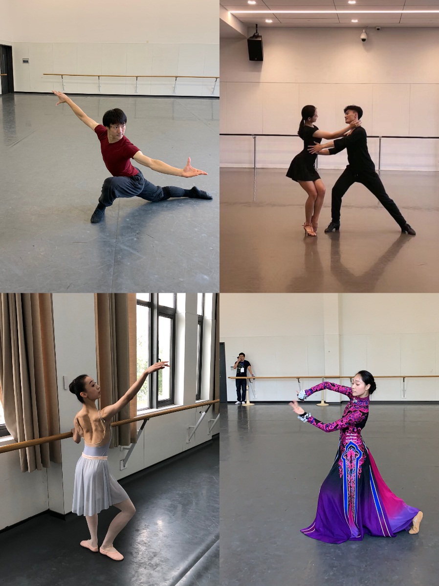 师生们则在确保不影响正常课程秩序的情况下,争分夺秒地进行着排练。暑假期间也没有松懈,指导老师自愿牺牲休息时间,和参演选手们一起投入到了积极而紧张的排练中。每天清晨都能看见学生们在舞蹈教室里自觉练习的身影。每一次起舞都是为了动作再标准一点,情绪再饱满一点,离完美再近一点。学生们的进步离不开老师们的教导与守护,排练教室离总能听到老师们对学生一针见血的严厉点评和亲力亲为的指导教学。