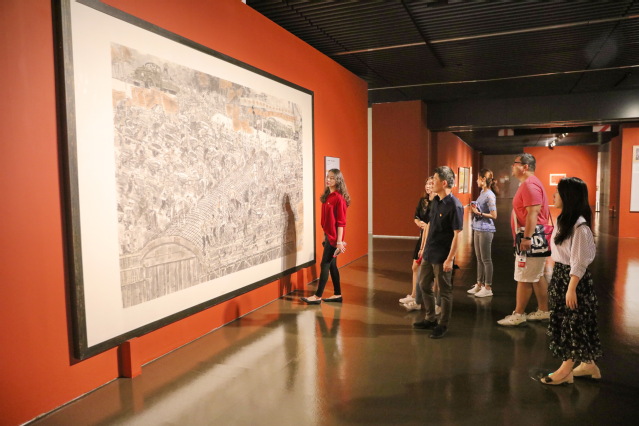 党员同志们边参观边感叹:“海纳百川,追求卓越,开明睿智,大气谦和”,这是家喻户晓的上海当代城市精神,在艺术家笔下成为了上海科技创新成果、上海对外交流发展和城市新高度、一系列温暖民生举措等,大到“一带一路”,小到社区邻里中心,都在展览中有所体现。而这一件件作品以艺术家的视角描绘城市中一个个关注点,着眼于街区服务、医疗卫生、文化福利等与日常生活密切有关的题材,展开了一幅幅多姿多彩的生活场景。
