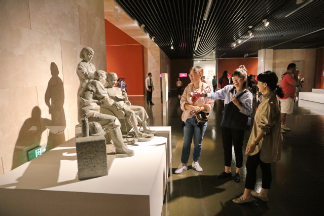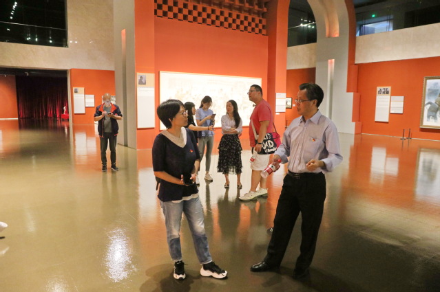 10月11日上午,在戏校党总支书记钱平安、副书记刘爱香的带领下,全校近50位党员来到中华艺术宫,参观“时代风采——上海现实题材美术作品展览”。