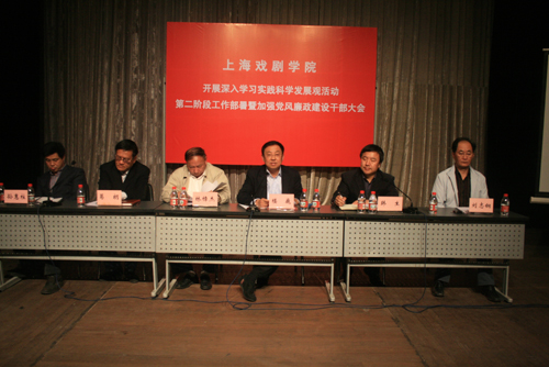 昨天(4月30日)下午,我校在新空间剧场举行学习实践活动第二阶段工作部署暨加强党风廉政建设干部大会。党委书记楼巍代表学校学习实践活动领导小组作重要讲话。市教卫党委检查指导组第二组组长林樟杰代表检查指导组作重要讲话。主持工作副院长韩生主持会议。会议对我校开展深入学习实践科学发展观活动的第一阶段工作进行总结并且提出了第二阶段各项工作的目标。
