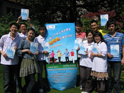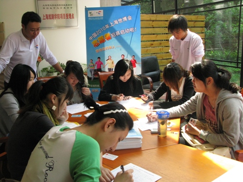 5月1日上午九点,中国2010年上海世博会志愿者招募工作正式启动,上海戏剧学院作为上海地区72个世博志愿者报名点中的一个,也准时拉开了世博志愿者招募工作的大幕。