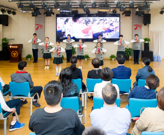 在与启音学校共建活动中,老师和孩子们用一曲欢快的舞蹈迎接了机关第一党支部的党员同志,他们精心准备的朗诵《我的祖国》和快闪歌曲《我和我的祖国》让支部所有的党员们热泪盈眶,因为大家知道,他们发出的每一个声音,每一个整齐划一的动作,对他们,对老师都是千倍百倍的付出。机关第一党支部也带去了三个舞蹈节目,给孩子们捐赠了学习文具和学习金。