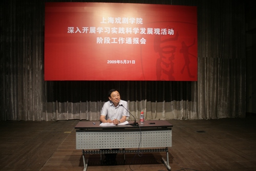根据市学习实践活动的统一部署,在指导检查组指导下,我校党委于今天下午在新空间剧场举行学习实践活动阶段工作通报会。我校党委书记、校学习实践活动领导小组组长楼巍主持会议并向全程参加学习实践活动的90多位代表通报了我校学习实践活动开展的情况。市指导检查组副组长施小明,我校主持工作副院长、校学习实践活动领导小组组长韩生,副院长、校学习实践活动领导小组副组长葛朗,副院长、校学习实践活动领导小组副组长刘志钢等领导出席了会议。