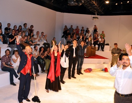 近日,我院《哈姆雷特:那是一个问题》剧组一行23人应邀参加“2009格洛托夫斯基年国际戏剧节”,并于6月28日晚在波兰佛洛茨瓦夫市Scena Na Swiebodzkim剧院隆重首演,演出赢得观众热烈好评。
