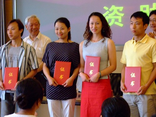 7月3日上午,2009年度晨光计划项目资助仪式在上海师范大学会议中心二楼2号报告厅举行。此次会议由市教育发展基金会、市教委科技处、上海师范大学联合主办,会议由市教育发展基金会常务副理事长薛喜民主持,市教委副主任王奇、市教育发展基金会理事长谢丽娟、上海师范大学副校长李和兴出席会议并讲话。我校俞玮娅、庄丽老师荣获2009年度晨光计划项目资助,并作为入选者,应邀出席了颁证仪式。