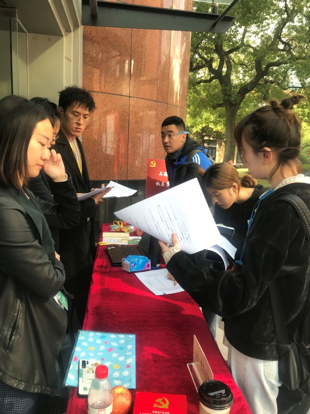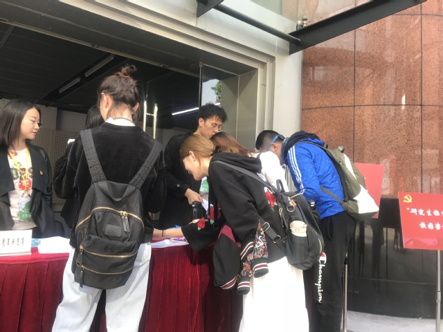 本次咨询活动设在华山路校区端钧剧场门口。活动现场,陆续有校内外学生前来咨询。其中,既有来自华东师范大学、东华大学、北京电影学院、上海海洋大学、上海杉达学院等高校的考生,也有来自本校戏文系、导演系、舞美系、创意学院以及特意从虹桥路校区过来的舞蹈学院本科在校生。前来咨询的学生中,有的重点了解了考研复试内容及历年复试分数线,有的对能否跨专业报考进行了咨询,有的关注调剂政策的变化,有的侧重了解拟报考专业的特色及培养目标,还有前来询问关于“退役大学生士兵”专项计划优惠政策的退役士兵……机关第七党支部的党员同志热情地接待考生,耐心地解答问题,为学生提供相关咨询。