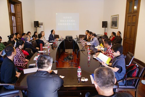 今日上午,香港艺术界考察团一行30余人在香港艺术发展局主席马逢国的带领下赴我校参观考察。校领导韩生,院办、党办、外办主任金永林,外办主任助理张芸蕾等在佛西楼会议会见了考察团一行。