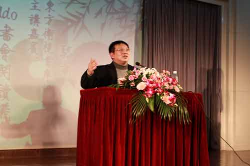 最后,骆新老师进行了为时一个小时的主题讲座,认为人生是阅读的过程,读书的目的不是为了纯粹的就业,而是要达到“闲适、有趣、业余”的心态,并认为读书的关键是心态,要学会在阅读中感悟世界。骆新老师从以自身经历和认识上海世博为基点,阐述了阅读的意义是帮助人感悟,从而解放精神,创新视角,得到心灵上的升华。并将阅读与未来相结合,意在使广大大学生重视阅读,并在升华自我的基础上为未来打好基础。他以新闻评论员的独到眼光,诙谐幽默又严谨犀利的风格向在座的观众阐述了如何在网络时代进行高效有益的阅读,他从大家对世博会的读解方式做引子,分析了闲适、有趣味以及有自己的想法是进行有效阅读的必要条件,剖析了阅读感受由低到高的三个层次分别是感知、认知与表现。他还指出我们可以通过旅行获得心灵的感悟,而且阅读本身就是一场心灵的旅行。在讲座过程中,他旁征博引,娓娓道来,观点鲜明突出,见解独到深刻。