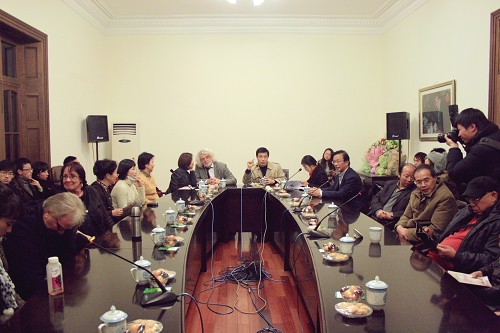 演出结束后,领导、专家、《新婚的一对》一剧的导演、表演、舞美、音效等主创人员50余人齐聚佛西楼会议室对该剧进行了研讨,研讨会由副院长孙惠柱主持。熊源伟、刘明厚、宫宝荣、方方、曹路生以及来自挪威的剧作家、挪威领事馆领事等先后发言,对该剧的演出发表了自己的看法,对比昂逊剧作《新婚的一对》在中国的首次上演表示欣喜,希望今后能更多地看到富有挪威特色的剧作在中国上演。