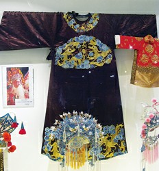 展示厅里一批特别赶制的60厘米高、着各行当戏服的人偶,因制作精良,京剧院的几位老师傅花三五个月才制成一套,比戏服更为精致,每个造价都不低于6000元,其华美精致的行头与纯木制的无表情脸面形成了颇具艺术效果的对比。(原载于2009-12-04《新民晚报》 作者:朱光 本网编辑/雨田)