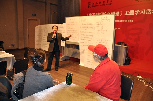 学习活动中,副院长刘志钢向来自台湾企业界的代表介绍了上海戏剧学院发展历史、现状、国际交流等概况,希望两岸加强联系、沟通与合作。来自台湾中央大学管理学院的资深教授宋铠任主讲人,宋教授介绍了学习型组织的定义、基础、五项修炼等核心概念。活动最后,院长韩生对学习活动进行总结,韩院长指出学习型组织的创建对艺术院校具有创新意义,为我校推进国际一流的现代艺术大学建设起到良好的推动作用。