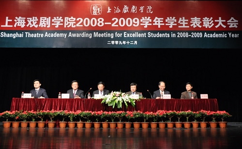 今日中午12点45分,上海戏剧学院2008至2009学年学生表彰大会在我校上戏剧院隆重举行。校领导楼巍、韩生、葛朗、刘志钢,院长助理徐幸捷、王宏舟,出席大会并在主席台就座。来自全校各院系的数百名师生参加了表彰大会。表彰大会由院长助理王宏舟主持。