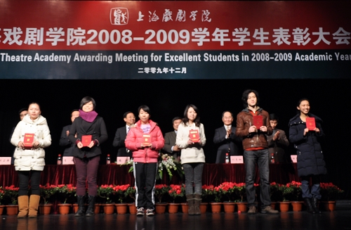会上,副院长刘志钢宣读了2008至2009学年上海戏剧学院学生奖学金和09级新生奖学金表彰名单;副院长葛朗宣读了2008至2009学年上海戏剧学院“三好学生”、“优秀学生干部”、 “优秀团干部” 、“优秀学风标兵班”、“先进集体”、“优秀团支部”表彰名单;院长韩生宣读了2008至2009学年“国家奖学金”、“上海市奖学金”、“上海市艺术专业优秀学生奖”、“宝钢优秀学生奖”表彰名单。