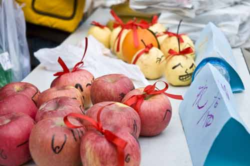 本次活动的主题是“送温情水果,做环保达人”。首先在宣传海报的制作上,一改往日的电脑制作,采用了完全手工制作的方式。海报的艺术字和图案,是同学们用彩色蜡笔和铅笔画上去的,展现了独特的风格。这一创新,不仅为整个活动打下了环保的基调,还起到了良好的主题宣传活动。在活动过程中,同学们用他们平日里的旧报纸和废电池来换取水果赠送给身边的朋友以表达新年祝福。我们将水果用笔和丝带做了精心的包装,将一个个小笑脸呈现在了苹果上面,将象征美好的红丝带系在了橙子上面,将祝福的话语和诗词写在了香蕉上面……一个个我们熟悉的水果在大家的包装下散发着不一样的“气质”。同时我们将这些水果进行了分类,有代表事业的有代表健康的等等。这种独到的方式极大地吸引了大家的积极性,同学和老师们都把自己的废旧报纸和电池来换取这些可爱的水果,以此传递冬日的温情与节日的祝福。