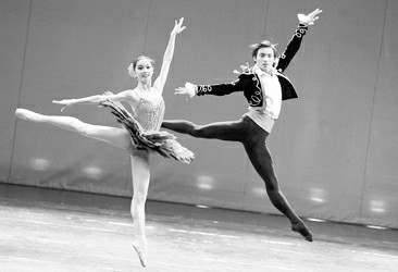 左图:《堂吉诃德》双人舞以扎实的舞蹈基础、高超的技巧感染全场观众。 金昊;姚芳