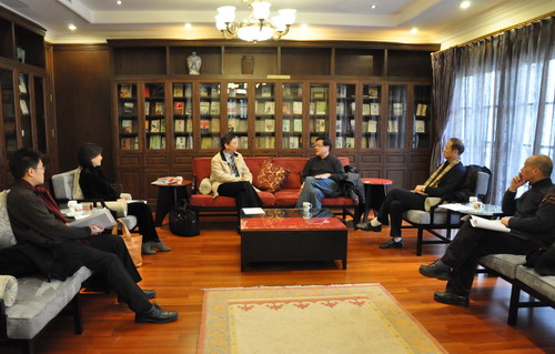 1月29日,我校葛朗副院长在院办主任金永林、舞美系主任刘永华的陪同下在余秋雨大师工作室会见了来访的台湾实践大学经济与金融研究中心主任张万同以及刘素华女士、杨景尧先生一行三人。