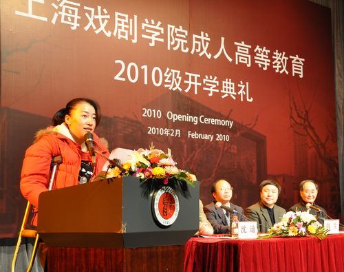 昨日(2月27日)下午,上海戏剧学院成人高等教育2010级开学典礼在端钧剧场隆重的召开了。出席本次开学典礼的领导有上海戏剧学院院长韩生教授、上海戏剧学院刘志刚副院长、上海戏剧学院继续教育学院常务副院长马麟鸿副教授、继续教育学院学生党支部书记姚引泉等领导出席此次开学典礼,典礼由继续教育学院办公室主任及培训部主任沈迪主持,继续教育学院2010级全体新生出席。