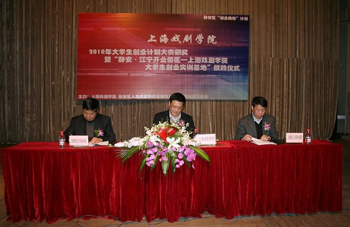 继2009年我校成功推出三支毕业生创业团队之后,2010年学校将继续深入开展创业教育工作,培养能力、扶持项目。当天现场,学校、静安区人力资源和社会保障局、江宁街道办事处三方领导共同签定了扶持大学生创业合作备忘录,副院长葛朗代表学校并向静安•江宁开业园区授予“上海戏剧学院大学生创业实训基地”铜牌,这标志着我校的创业教育工作中又多了一个平台,可以为有意向创业的大学生提供更多的实践指导与服务。院长助理王宏舟宣布获得第一、第二、第三名的团队的名单,他们分别是:王颖杰团队的彩虹乐园少儿英语戏剧培训中心;周涛团队的上海玄臣文化传播有限公司;何沁团队的尚�创邑婚典公司。3月11日下午早些时间,在虚拟实验室举行的上海戏剧学院2010年大学生创业计划大赛正是三方合作举行的主题活动之一。经过紧张角逐,最终从13支参赛队伍中脱颖而出三支创业队伍,赢得由“静安•江宁开业园区――上海戏剧学院大学生创业实训基地”提供的免租金创业办公室钥匙。其他的创业团队也将有机会得到创业专家的指导与评估。最后,副院长葛朗代表学校讲话,感谢静安区人力资源和社会保障局、江宁街道办事处对我校创业教育的大力支持,肯定参赛学生的表现,希望通过多方合力扶持成熟的创业团队实现梦想。(文/徐莹 图/小河 编辑/雨田)