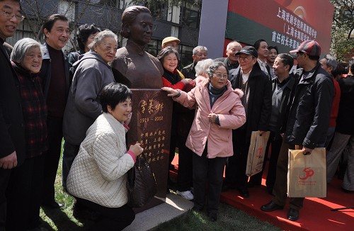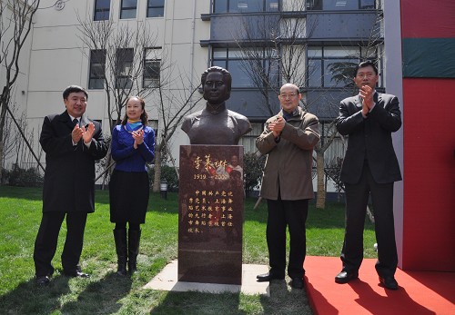 上海戏剧学院院长韩生、上海文广局党委副书记刘建、校友代表汪齐凤共同为首任校长李慕琳铜像揭幕