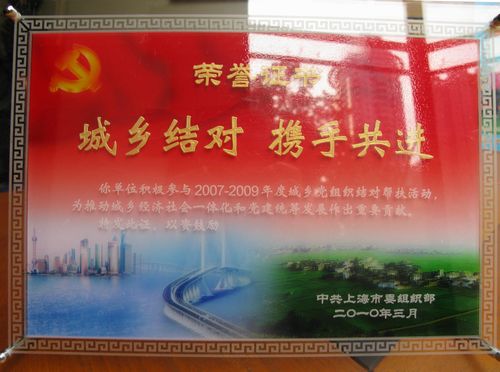 近日,我校先后荣获中共上海市委组织部颁发的“城乡结对,携手共建”荣誉称号和“上海市第九届党员教育电视片观摩评比专题片类”三等奖。