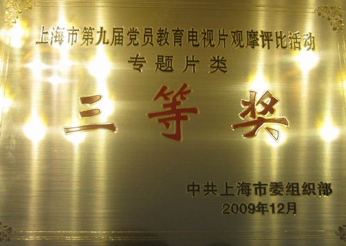 图为“上海市第九届党员教育电视片观摩评比专题片类”三等奖铜牌