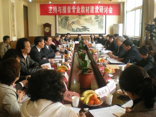 会议当天,中国广播电视播音员主持人协会理事长铁成教授、中国教育部广播影视专业指导委员会主任委员、广播电影电视管理干部学院副院长王建国教授、高指委委员、南京师范大学新闻传播学院院长、博士生导师毕一鸣教授以及我院吴洪林老师就我国播音主持专业的现状、远景以及播音主持专业教育如何更好的与一线对人才素质和能力的需求接轨做了现场发言,并对主持与播音专业系列教材之《节目主持》一书的框架、结构、内容、目的做出了建设性的探讨。会上,中国广播电视出版社副社长宋培学先生就教材出版事宜、书稿的格式体例以及书稿质量提出了具体的要求和详细的指导。