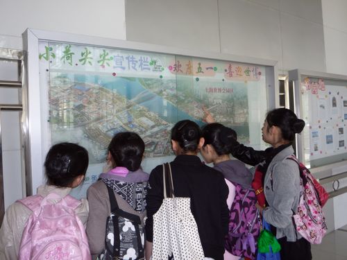 图为我校学生在关注世博橱窗