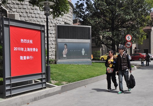 图为我校华山路校区庆祝世博会海报