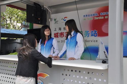 图为我校世博志愿者正在进行服务