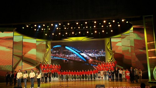 图为电视学院学生表演的大朗诵节目