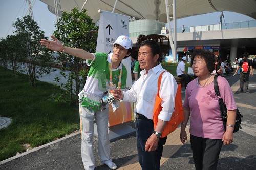 白天,阳光强烈,气温很高,川流不息的问讯和乘车客流让志愿者们一会儿就已汗流浃背;晚上,气温骤降,志愿者们穿着单衣在瑟瑟凉风中坚守岗位,但是我校的世博园区志愿者们没有因为工作的繁重和条件的艰苦而在工作中表现出任何情绪,他们始终保持着认真热情的工作状态,坚持为各地游客及国际友人提供尽量全面、准确、及时的交通信息引导,并老年游客、残疾人以及游览的小朋友等提供了真诚、周到的服务和帮助。他们以得体的仪表、真诚的笑容、礼貌的语言赢得了游客们的赞赏,不仅完美诠释了世博志愿者的形象,更展示出了上海戏剧学院的风采。