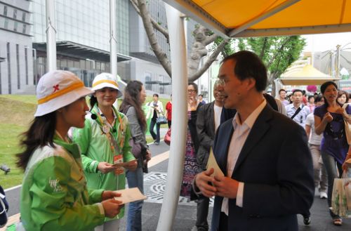 图为宫宝荣副院长等领导看望我校在岗工作的世博志愿者