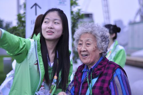 “前两天的志愿会让人干劲十足,因为充满了新鲜感,到了三四天的时候就会觉得疲劳,大概过了一个星期之后就会麻木,进而习惯,到了最后要离开的日子又会依依不舍”。前一批志愿者在换岗时向我们的志愿者传达着经验。 度过了前三天的新鲜感之后,志愿者们就开始感觉到了身心俱疲。因为连续不断的游客提问,志愿者的嗓子哑了,因为酷热的高温,志愿者们的衣服湿透了,因为高强度的服务工作,志愿者们在回校的班车上安静的相互依偎着。而在游客的面前志愿者始终保持着精神奕奕,用从容地解答来面对轮番轰炸式的游客咨询,用微笑来消解游客不理解和不满情绪的宣泄。在此刻,微笑不仅是世界共同的语言,同样也是世界上最美丽最有效的语言。游客的一声“谢谢”成为了志愿者们的动力之源。
