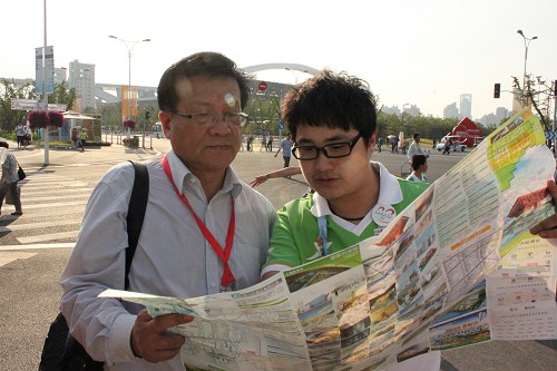可以说今天是志愿者们入园以来最热的一天了,燥热的空气,巨大的人流,志愿者们的嗓子都喊哑了,尤其是公交站点的志愿者,既要维持秩序又要要解答问题,连喝口水的时间都没有。好在我们志愿者早已建立了“联动”机制,使得世博中心周围不同车站之间的游客数量基本维持平衡,虽然由于人多,每一趟世博大道线公交车在世博中心站停靠时上不了多少游客,但是因为我们的志愿者们积极地与游客沟通、热情地提供问讯服务,游客的秩序和情绪都非常好,有的游客发现我们是上海戏剧学院的志愿者,还与我们饶有兴趣的攀谈起了著名校友,称赞着他们的艺术成就,肯定着我们的服务态度,我们顿时感到,身为一名上海戏剧学院世博园区志愿者是多么的荣耀。