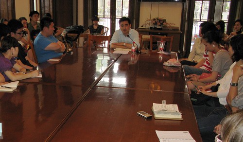 图为院长助理王宏舟在为毕业生党员做专题讲座