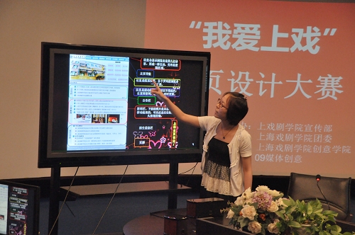 6月27日下午一点半,上海戏剧学院首届“我爱上戏”网页设计大赛评选颁奖大会在上海戏剧学院虚拟实验室举行。宣传部部长张生泉老师、团委书记陈云老师、创意学院党支部副书记刘志新老师、创意学院盛思梅老师、信息中心主任助理陈永东老师、创意学院陈晔老师组成的专家评委组进行了认真严格的评审,来自各院系的同学观摩了比赛。经过了两个半小时的激烈角逐,终于在十九份高质量的作品中选出最终获奖作品。