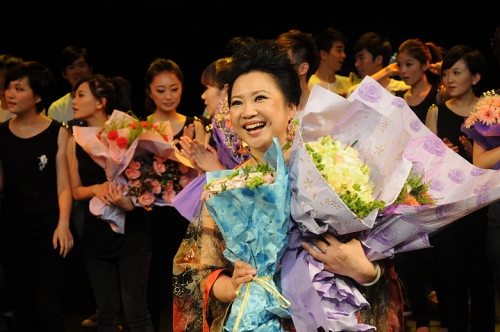 在音乐会的尾声部分,总策划、声乐指导教师宋颂为了答谢各位领导、老师和同学及来宾对零八主持的厚爱,献唱了法国古诺的歌剧《罗密欧与朱丽叶》中咏叹调《我要生活在美梦中》;特邀嘉宾王宏舟老师也助阵用意大利语演唱了唐尼采蒂歌剧《爱的甘醇》中咏叹调《偷洒一滴泪》;王老师、宋老师和全体零八主持同学一起合作,为观众奉献了普契尼歌剧《图兰朵》中经典唱段《今夜无人入睡》,将晚会又一次推向新高潮…之后,全体同学用上海话合唱了《啊,朋友再会》。演出的结束时,是同学们自发排练、饱含热泪专门献给宋颂老师的歌曲《爱的代价》,这首歌,也唱出了零八主持全体同学的心声:“老师,您辛苦了!您对我们的爱,为我们的付出已铭刻在我们25颗心中!我们永远爱您…”。我们沐着浓浓的爱,我们的爱已成歌…演出虽已结束,观众久久不愿离去,和我们的心在一起跳动,为我们的爱、我们的师生情所深深打动,共同分享着这份快乐!流淌着幸福的热泪…共同创造这个美好的夜晚,真是“今夜无人入眠”……(图文/马聪 编辑/雨田)