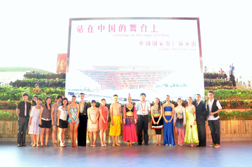 从7月13日起,傣族舞《赞哈》、乐器合奏《茉莉花》、探戈《歌剧魅影》、扬琴独奏《黄土情》等具有中华民族特色的节目献演于世博会中国馆9米平台的舞台上,博得了参观观众的热烈欢迎。这是我校舞蹈学院师生,在院长助理王宏舟老师的带领下,参加“站在中国的舞台上――中国国家馆广场演出”。