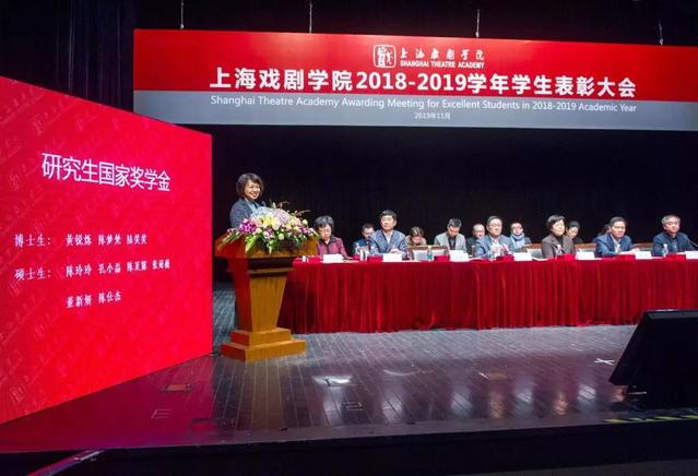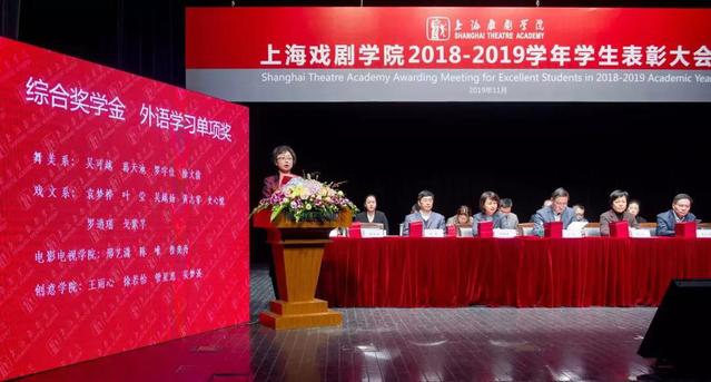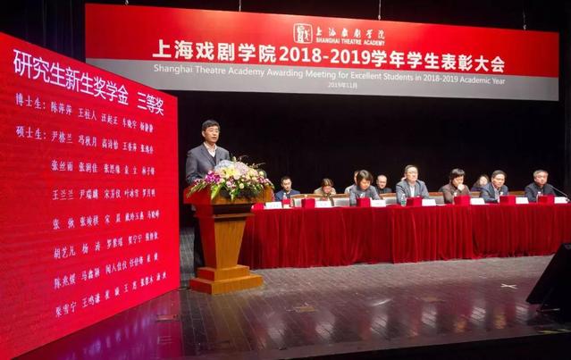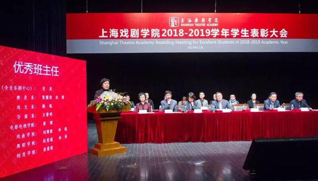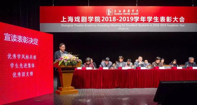 上海戏剧学院2018—2019学年学生表彰大会,于11月21日在华山路校区端钧剧场举行。校领导谢巍、胡敏、周银娥、唐立兔、杨扬、刘庆、张佳春以及各院系领导出席并为获得各类荣誉的师生代表颁奖。大会由副院长刘庆主持,学工部、团委负责人,各院系辅导员、班主任老师,以及获奖学生代表参加表彰大会。