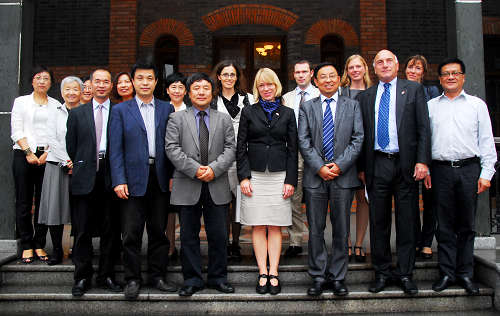9月26日下午,挪威文化大臣安尼肯・惠特费特尔女士,挪威驻上海总领事馆领事博雄带领挪威文化代表团一行八人来到我校访问。我校党委书记楼巍,院长韩生,副院长孙惠柱、宫宝荣,校务委员会副主任葛朗,刘明厚教授、李婴宁教授,院办主任罗小丹,国际交流中心副主任张云蕾和我校英语教师邹鲁路在佛西楼会议室接待来宾。