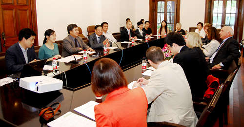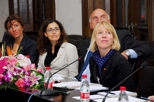 会间,韩生院长向来宾介绍了我校的历史和办学现状。安肯尼女士也表达了对我校盛情接待的感谢。国内第一位将挪威著名剧作家乔恩・福斯翻译成汉语文本的邹鲁路老师也进行了简短的发言,表达了对于乔恩・福斯作品的喜爱及对于挪威方面在其翻译过程中提供协助的感谢。