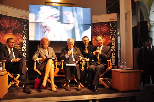 在新闻发布会上,一份由米兰市政府、米兰世博会筹委会、米兰小剧院三方起草的、关于共同为2015年世博会进行创意、策划和演出制作等相关内容的合作协议进行了签署。市长莫拉蒂、世博会筹委会执行总裁萨拉、米兰小剧院院长埃斯库巴分别在协议书上签字。