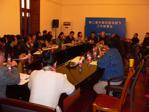 第二届中国校园戏剧节工作部署会于本月28日下午在我校举行。黄昌勇副院长代表学校对参加会议的上级领导和兄弟高校同志表示欢迎并对我校如何保质保量完成戏剧节参赛剧目和做好戏剧节组织工作作出承诺。市教卫党委宣传处副处长劳晓芸、市文联和剧协领导陈达明等出席会议。