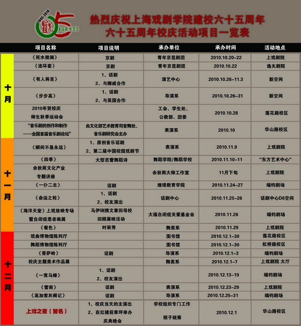 校务委员会副主任葛朗老师简要回顾了在我院党委领导下校庆活动筹备的情况,明确了65周年校庆的指导思想主要是推动发展、涵养文化、凝聚人心以及面向未来。他介绍了此次校庆活动的总体安排,主要有演出、学术研讨、展览展示、出版、校园文化、宣传和传播、12月1日主活动日、与静安区合作等内容。